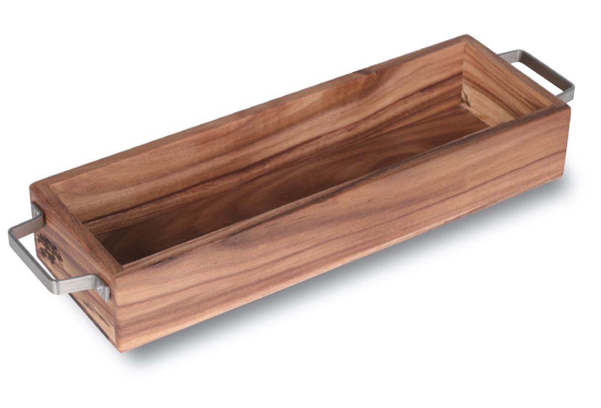 天然アカシア材の温かみある木目が魅力の、ハンドル付き木製ケース。