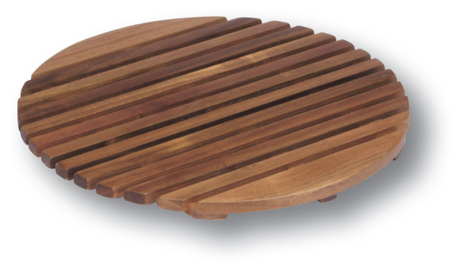 天然アカシア材を使用した円形のディスプレイすのこ。