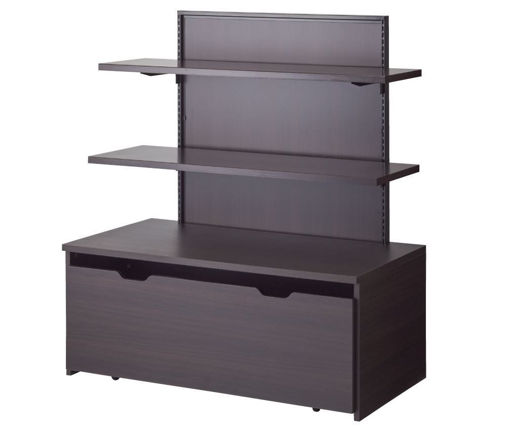 収納力とディスプレイ性を兼ね備えた木製シェルフ。